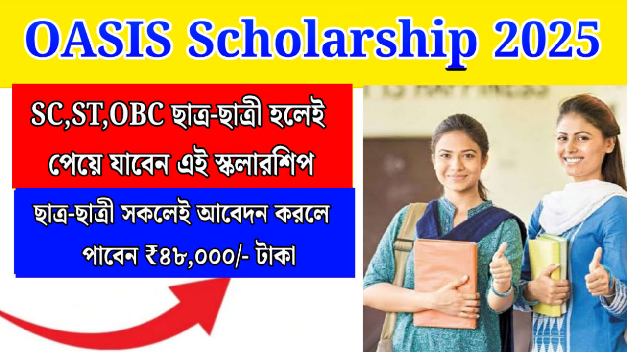 OASIS (Online Application for Scholarship in Studies) হলো পশ্চিমবঙ্গ সরকারের একটি অনলাইন স্কলারশিপ পোর্টাল, যা বিশেষভাবে SC (তফসিলি জাতি), ST (তফসিলি উপজাতি) এবং OBC (অনগ্রসর শ্রেণি) শিক্ষার্থীদের জন্য তৈরি। আপনি যদি পশ্চিমবঙ্গে একজন অনগ্রসরত শ্রেণীর প্রার্থী হয়ে থাকেন এবং উচ্চশিক্ষা গ্রহণ করতে আগ্রহী হয়ে থাকেন তাহলে আপনিও প্রতিবছর মোটা অংকের স্কলারশিপ পেয়ে যাবেন।