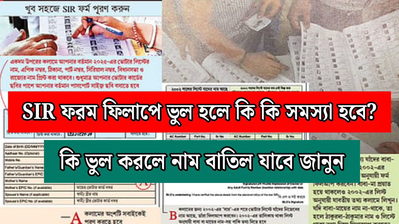 অনেকেই ভাবেন, “ফর্ম তো পেয়েছি, কিন্তু জমা না দিলেও হয়তো কিছু হবে না।” আপনিও যদি এমনটা ভেবে থাকেন তাহলে এই ধারণা সম্পূর্ণ ভুল! নির্বাচন কমিশনের নির্দেশ অনুযায়ী, আপনি যদি SIR ফর্ম গ্রহণ করেন, তবে সেটি অবশ্যই জমা দিতে হবে। আপনি যদি জমা না দেন তাহলে আপনাকে ভোটার তালিকা থেকে বাদ দেওয়া হবে। এর ফলে আপনি বিভিন্ন ধরনের সমস্যার সম্মুখীন হতে পারেন। এছাড়াও আপনি যদি ফর্মে বিভিন্ন ধরনের ভুল করে থাকেন তাহলেও এক্ষেত্রে আপনার বিভিন্ন ধরনের সমস্যা হতে পারে।